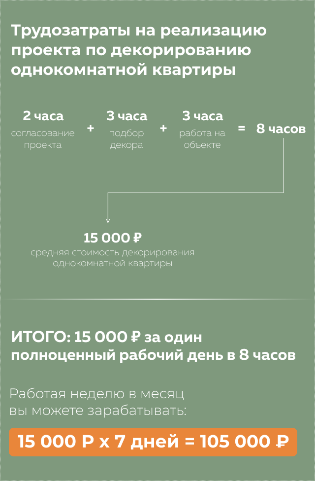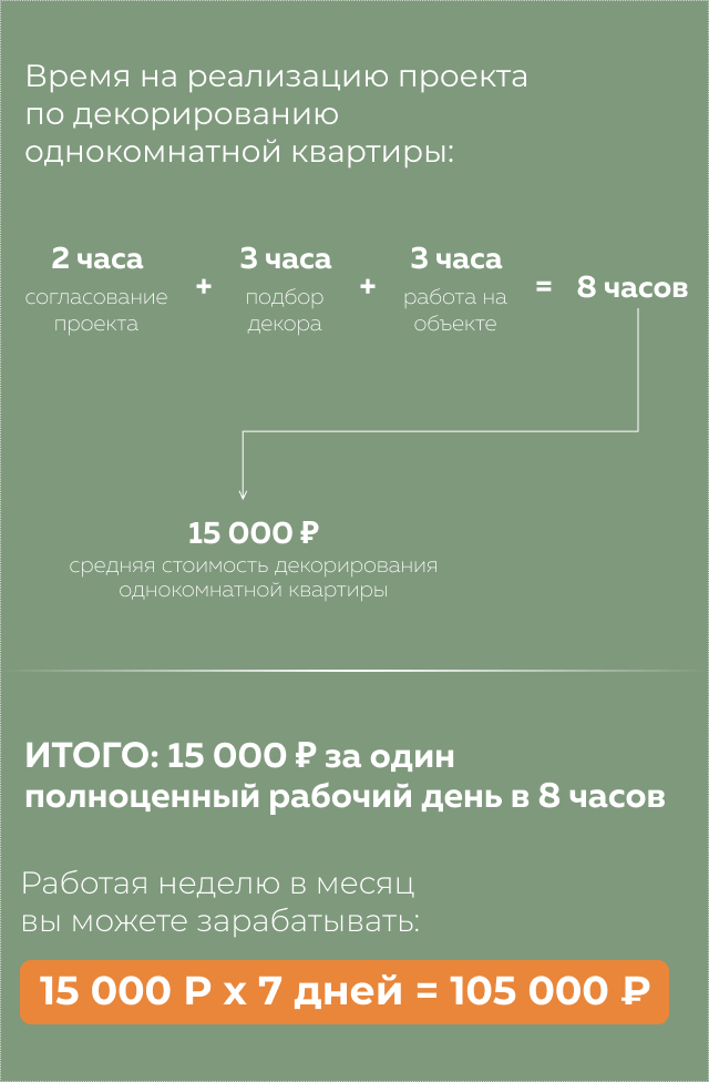 ДАВАЙТЕ ПОСЧИТАЕМ, КАК ВЫ МОЖЕТЕ ЗАРАБАТЫВАТЬ, ОКАЗЫВАЯ УСЛУГИ ДЕКОРАТОРА ИНТЕРЬЕРОВ: